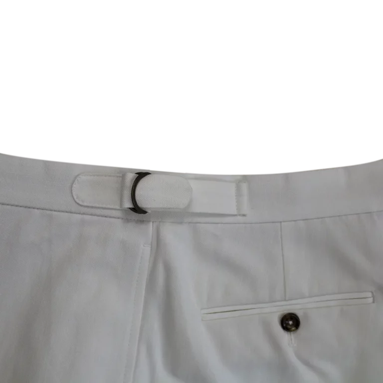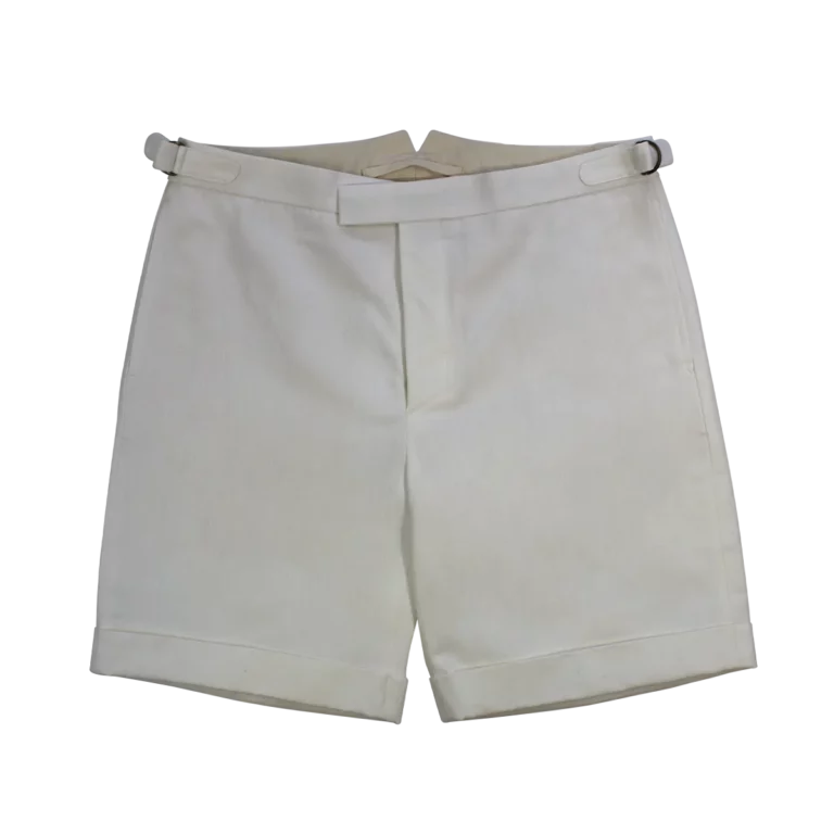 Le bermuda AK MC est fabriqué selon les mêmes normes sartoriales élevées que nos vêtements formels et comporte une fermeture à boutons (avec de vrais boutons en corne), une patte de boutonnage française et des ajustements latéraux. La ceinture interne est fermée par un rideau pour plus de confort, une caractéristique rarement vue en dehors du domaine de la confection sur mesure. La coupe est basée sur le modèle Riviera, avec une taille légèrement plus haute et une largeur fine mais confortable au niveau de la cuisse. Les ourlets sont tous finis avec la manchette de 4 cm caractéristique.