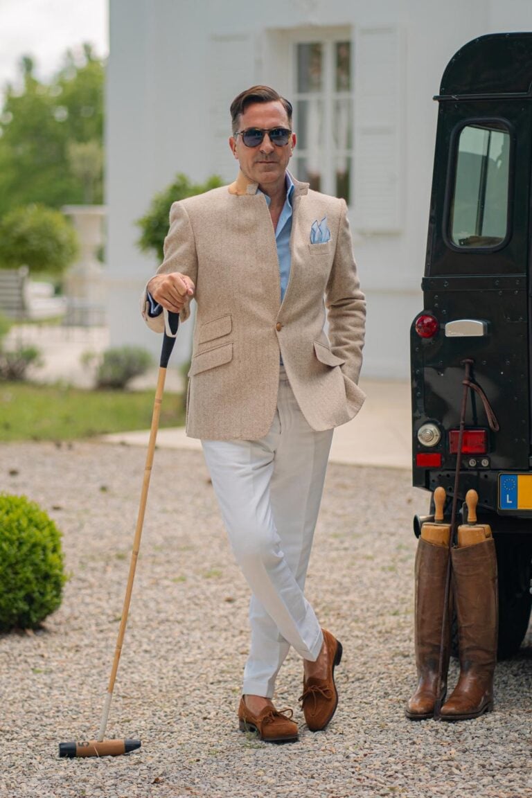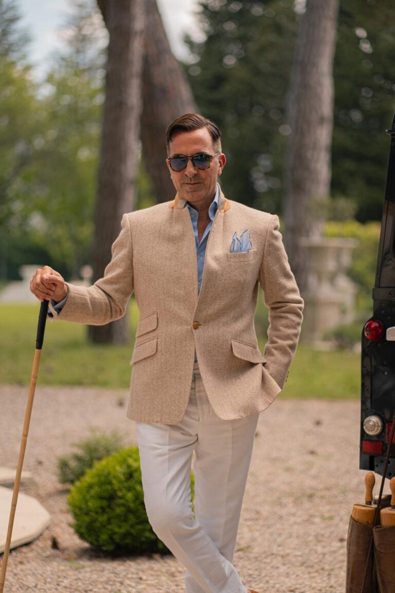 Inspired by Savile Row traditions, the jacket achieves a perfect balance between elegance and comfort. High armholes, roped shoulders, a softly contoured chest, and a nipped-in waist create a sophisticated and flattering silhouette.