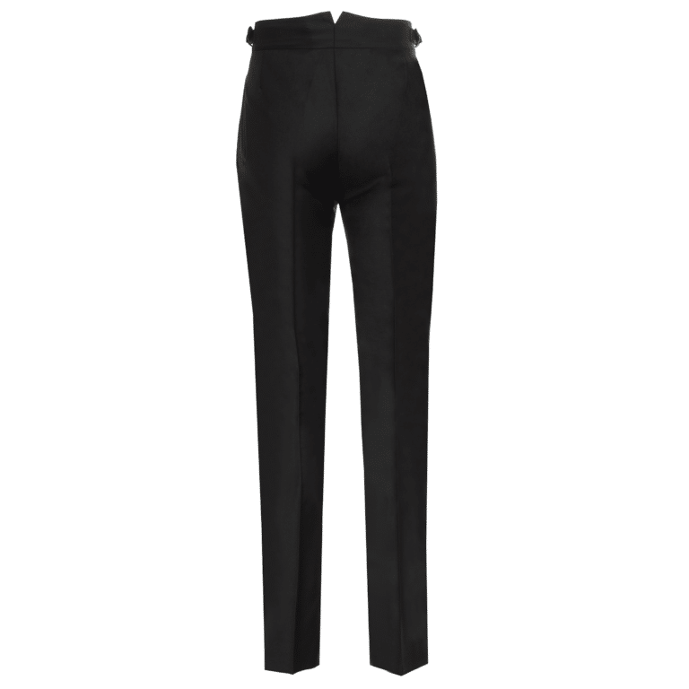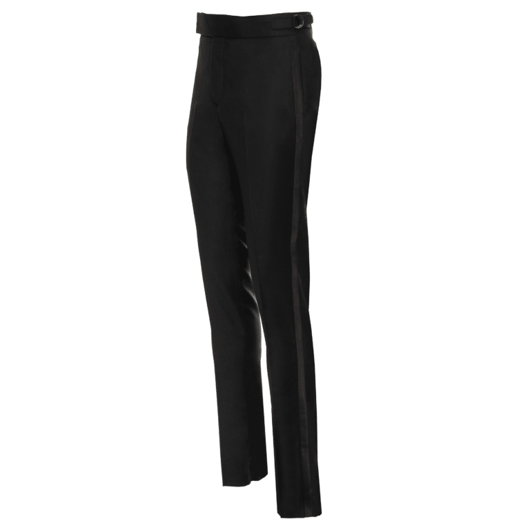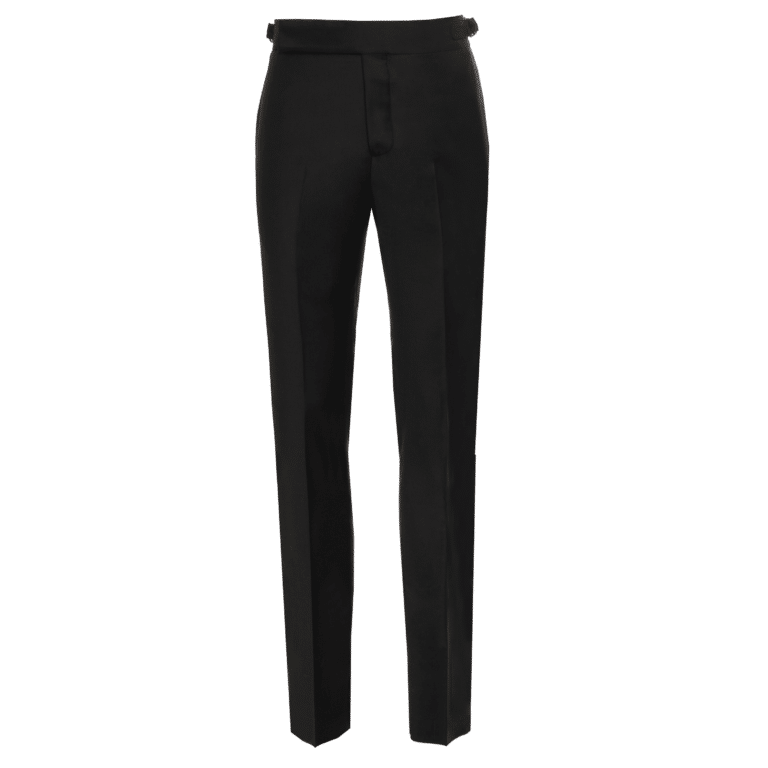 the AK MC evening trousers have been realised in a super 150s wool with a soupcon of silk from world-renowned luxury Italian mill, Loro Piana.