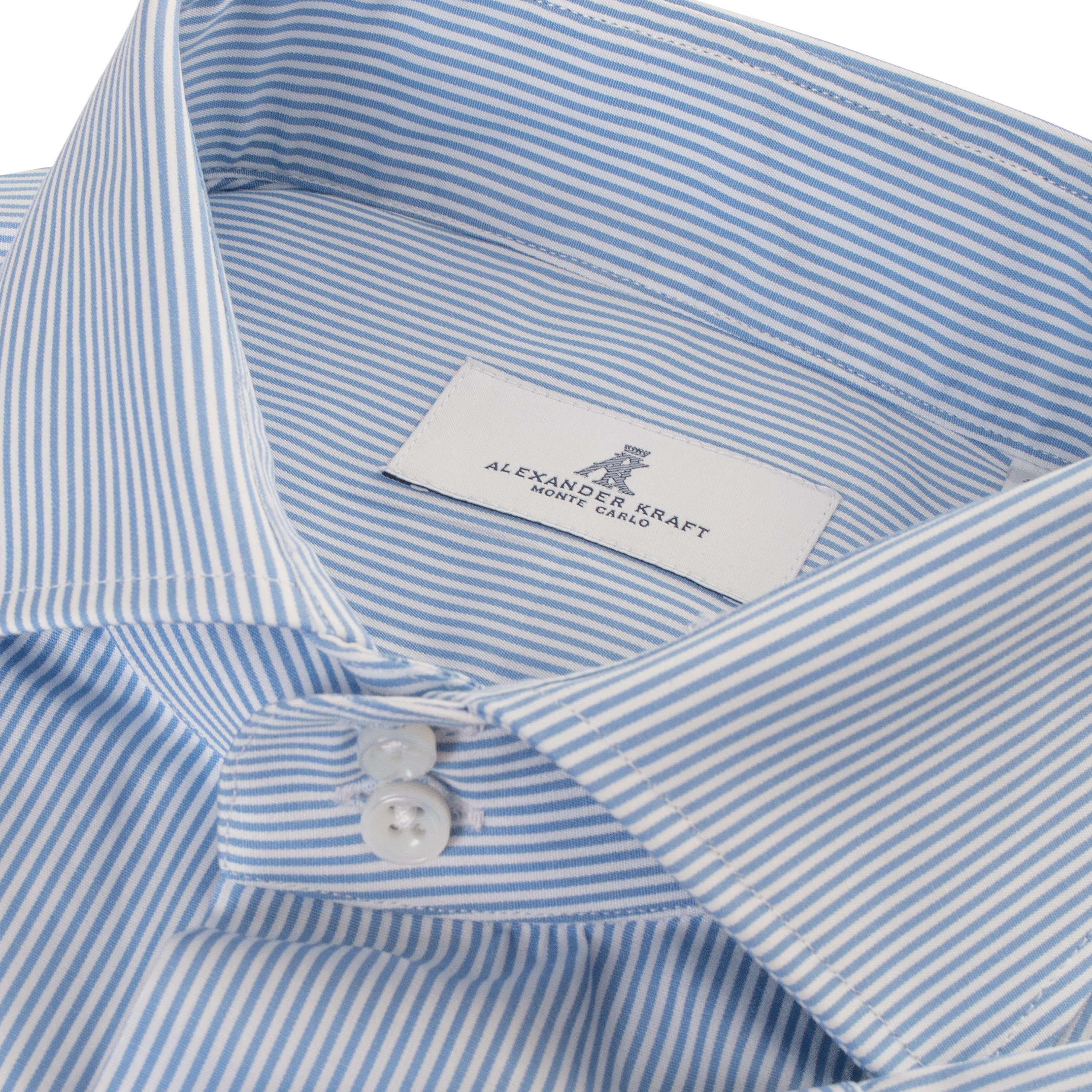 The Alexander Kraft Monte Carlo shirts are expertly crafted in a small, family-owned atelier in Puglia, ensuring exceptional quality and attention to detail. Each shirt features our distinctive 2-buttoned spread collar, designed to perfectly frame a tie while also offering the versatility to be worn open-necked for a more relaxed look. The fit is contoured to the body, with an extra-long tail to ensure it stays neatly tucked, while the sleeves are finished with a distinctive barrel style in the Jermyn Street tradition.