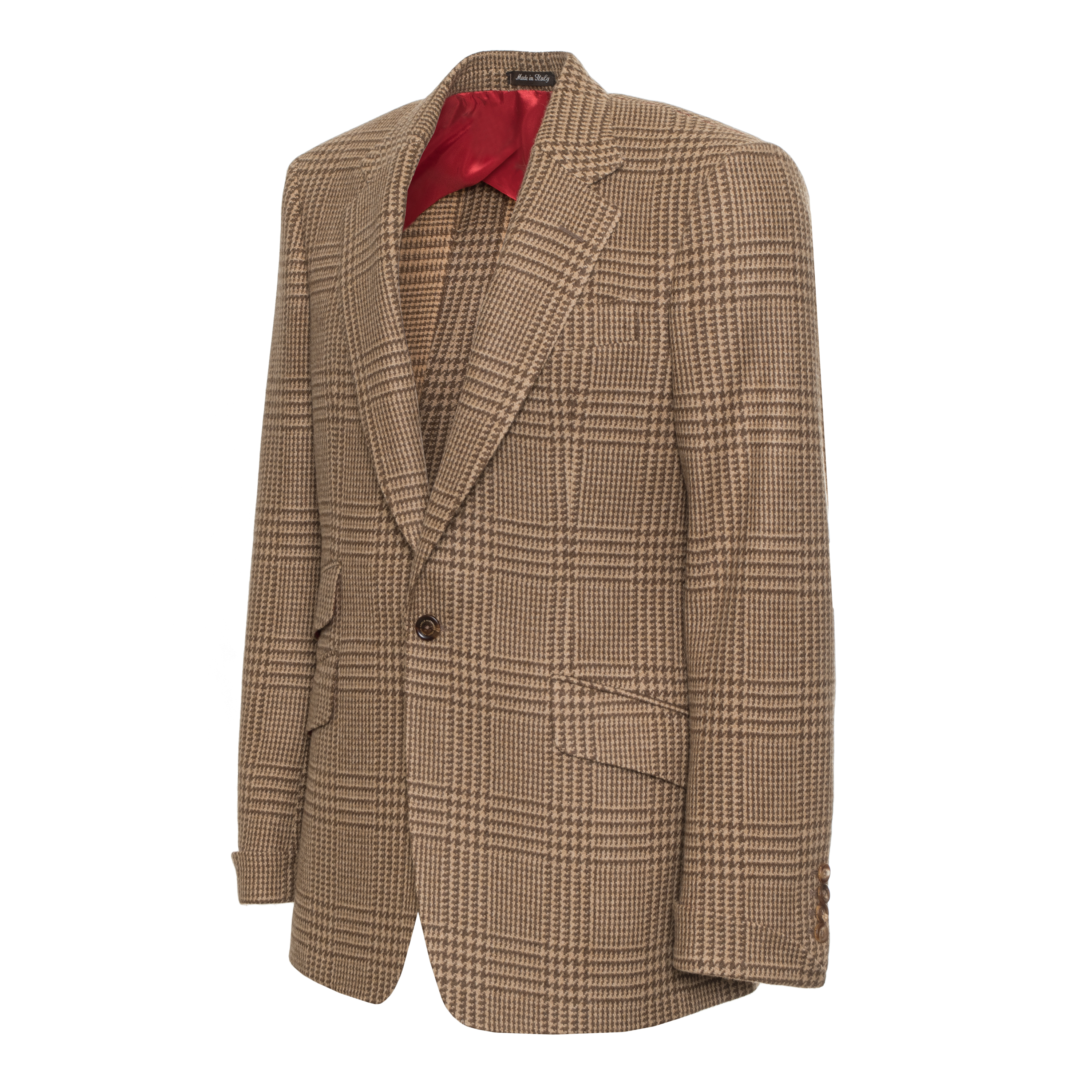As winter approaches, it’s time to refresh your wardrobe with the rich tones of the new season. Woven exclusively in Italy for Alexander Kraft Monte Carlo, this luxurious cloth is crafted from the finest lambswool, creating a medium-weight fabric that is ideal for cool winter days. The bold Prince of Wales check not only pays tribute to the Duke of Windsor but also introduces a modern, sophisticated flair, making this jacket a standout piece for the discerning gentleman.