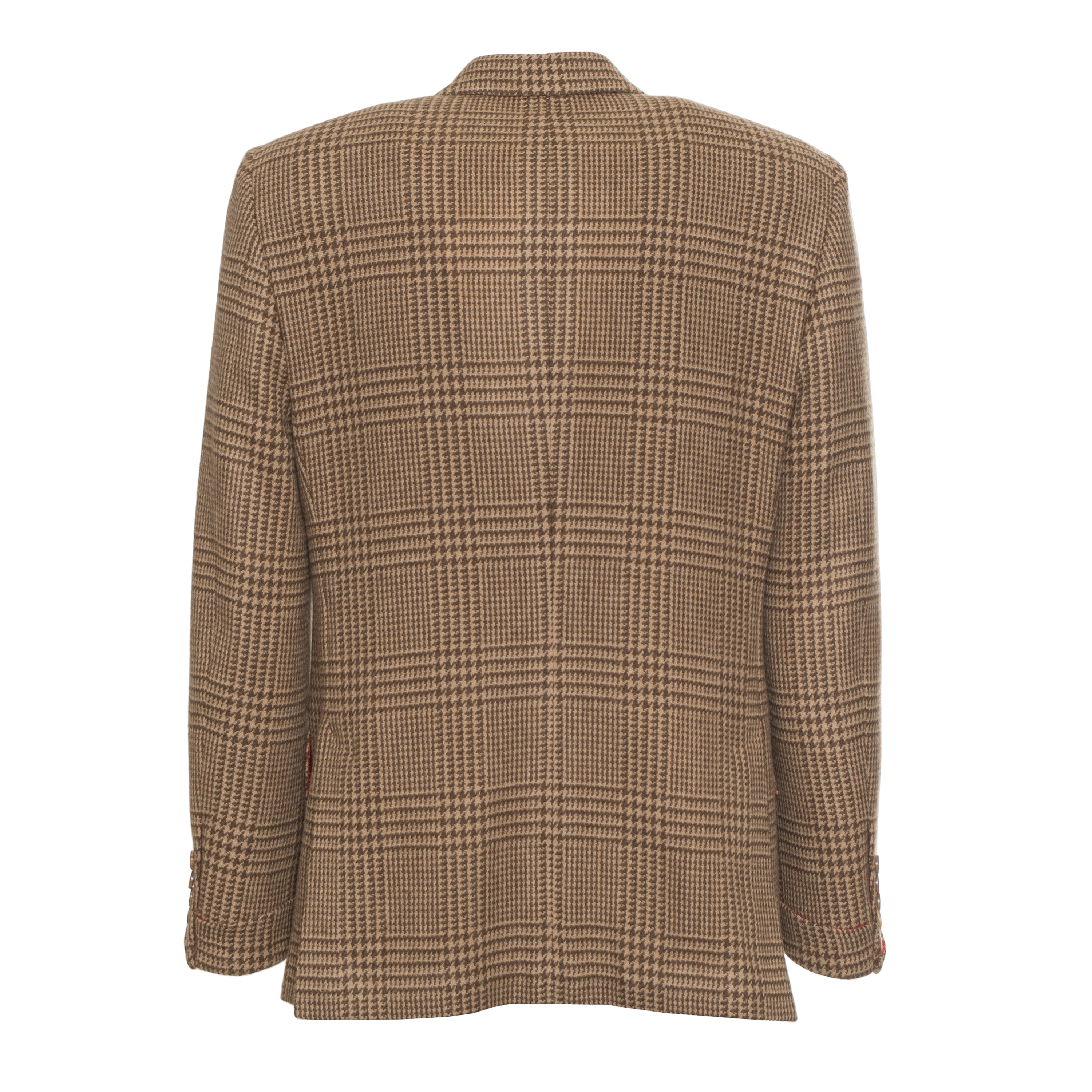 Tailored on our Signature house model, the jacket features a medium-width notch lapel, side vents, and slanted side pockets, complemented by a ticket pocket in the classic hacking jacket style. Turn-back cuffs lend a touch of old-world elegance, while the undercollar—crafted from genuine leather—adds a discreet yet luxurious finish. The jacket is partially lined for maximum comfort, ensuring ease of wear throughout the season.