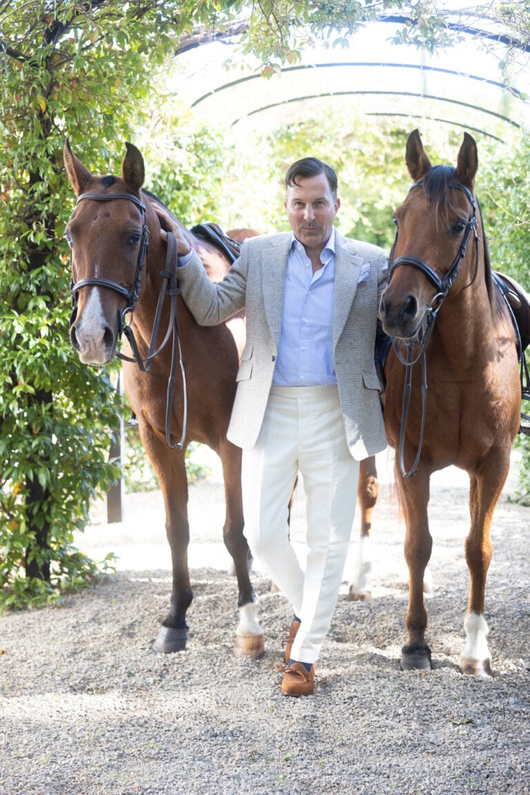 In sync with our continued sartorial enactment to accommodate the socially active lifestyle of the modern gentleman, this single-breasted one-button closer design also comprises the AK MC refined medium-width notch lapel. The Savile Row-inspired silhouette combines a strikingly elegant appearance with maximum comfort, thanks to high armholes, roped shoulders, a delicately shaped chest, and a nipped-in waist. The jacket features side vents and slanted side pockets, complemented by a ticket pocket in the classic hacking jacket style. Additionally, the design features highly desirable light horn buttons, which serve as a benchmark in our efforts to infuse casual elegance with quality.