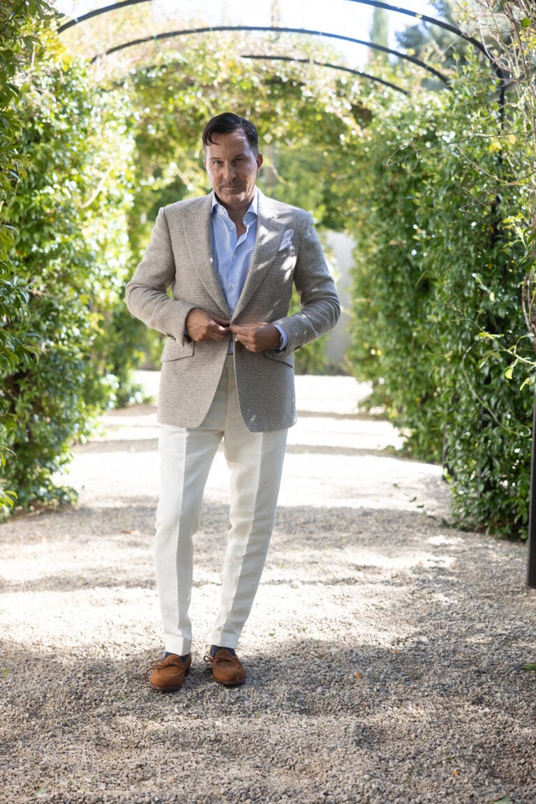 This new light grey and brown pure cashmere check sports jacket decodes the prism of sartorial menswear. Crafted in 100% hand-picked cashmere – the coveted, exclusive, and undeniably luxurious fabric – it is only best served on time-honoured designs which emit that natural aura of nonpareil comfortability, chicness, and sophistication.