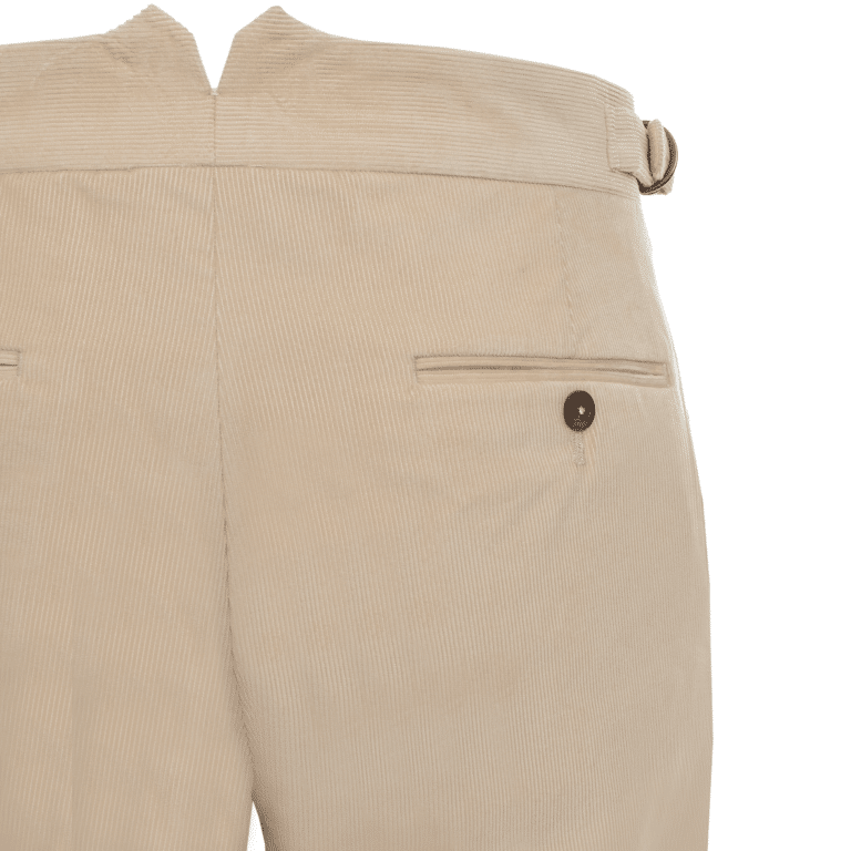 Produced from a high-quality soft cream cotton corduroy from a renowned Italian mill, this trousers is sure to appeal to connoisseurs around the world.