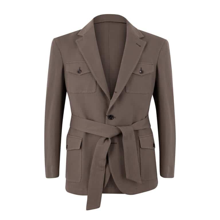Safari jackets are one of the ultimate staples of a true gentleman’s wardrobe. Whilst real-life safaris with big game hunting are thankfully a thing of the past, Alexander Kraft has adapted this classic garment for today’s use in the urban jungle: just like its ancestors worn by the likes of Clark Gable, Ernest Hemingway and co. The AK MC ‘USJ’ (Urban Safari Jacket) has four practical patch pockets and a belt; however, it is cut shorter and slimmer than traditional models that often tend to be on the bulky side, and features a sleeker lapel adopted from more formal jackets. It is half-lined and made of robust yet light cotton, making it the perfect companion for traveling as well as for excursions into the city, be it just around the corner or on the other side of the world. The belt comes without a buckle and is of generous length, so it can be tied in an informal knot on the front (slightly off-center for a non-chalant look). Its greige color has been specially dyed for AK MC: Alexander Kraft did not want a typical tropical beige, but a sleeker, more urban iteration that looks great both in the wild and in the city.