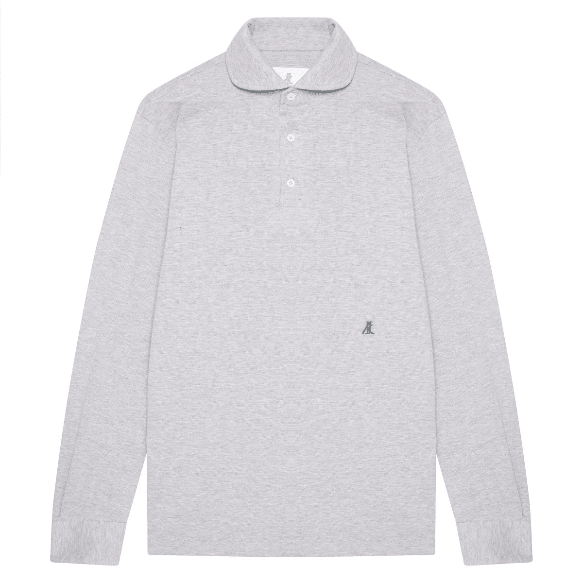 First of all, the collar of the polo shirt is cut like a spread, subtly rounded cut-away collar of a dress shirt, a highly elegant shape rarely seen on a polo shirt. In addition, the collar is much higher than on normal polo shirts and is fastened with a double button at the top. In order for this beautiful collar to not collapse when worn underneath a jacket, the collar has removable collar stays, just like a high-end dress shirt. Secondly, the button fly of the polo shirt consists of a (folded over) double layer of fabric, giving this crucial and very visible part of the polo shirt an additional touch of class. The polo shirt is long sleeved but has a 1-button barrel sport cuff (again comparable to a dress shirt) so it can be elegantly rolled up should the weather or the occasion call for it. On the left hip (where gentlemen have traditionally their initials embroidered on bespoke dress shirts), one finds the discreet yet very chic embroidered logo of Alexander Kraft Monte Carlo.