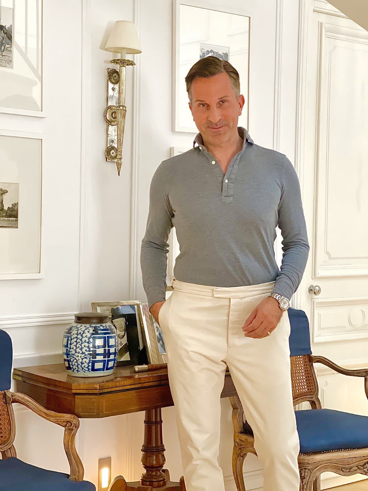 Alexander Kraft has long been a fan of polo shirts, from his early teens to the present day. However, he usually prefers long-sleeved polo shirts who have a clear edge in terms of elegance over their short-sleeved brothers but which are hard to find in dressier, sartorially more sophisticated versions. Thus, the AK MC “Long Sleeved Sartorial Polo Shirt” has been designed by Alexander Kraft with special attention to numerous sartorial details that make a huge difference in terms of comfort and style, thereby eliminating some of the most common pitfalls of « normal » polo shirts:
