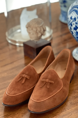 Belgian loafers have become a staple in every gentleman’s wardrobe across the globe: While being casual in style, they instantly add a touch of elegance to every outfit, from the most casual ones like Bermudas or jeans to semi-casual combinations such as slacks & blazer all the way to formal black tie.