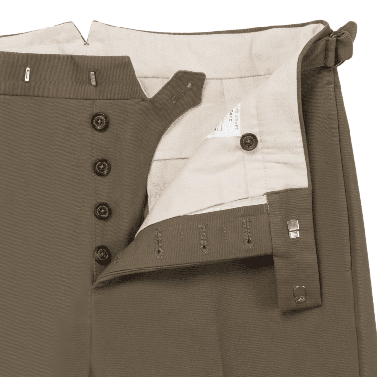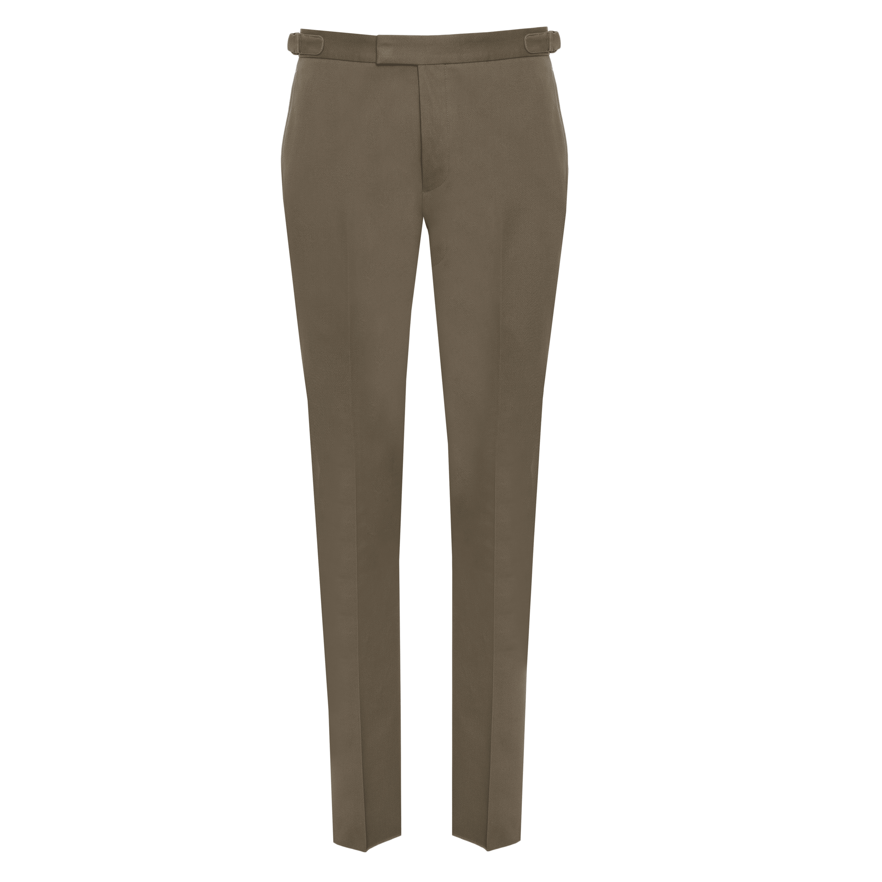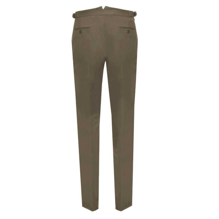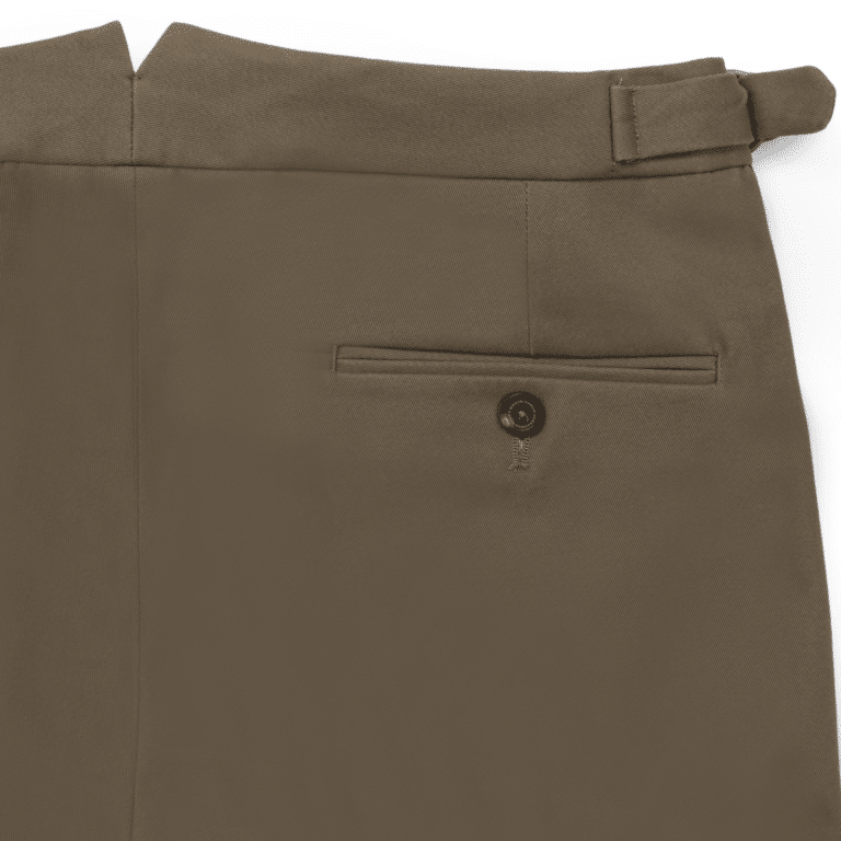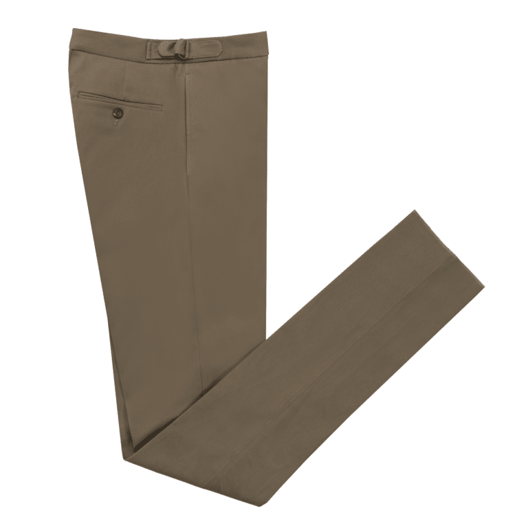 Created on the Riviera model, they have a higher-waist and slim, tapered silhouette. Side-adjusters negate the need for a belt and, in the bespoke tradition, have a button-fly.When combined with the matching jacket they create a formal outfit but work equally well when worn casually with a polo or denim shirt.