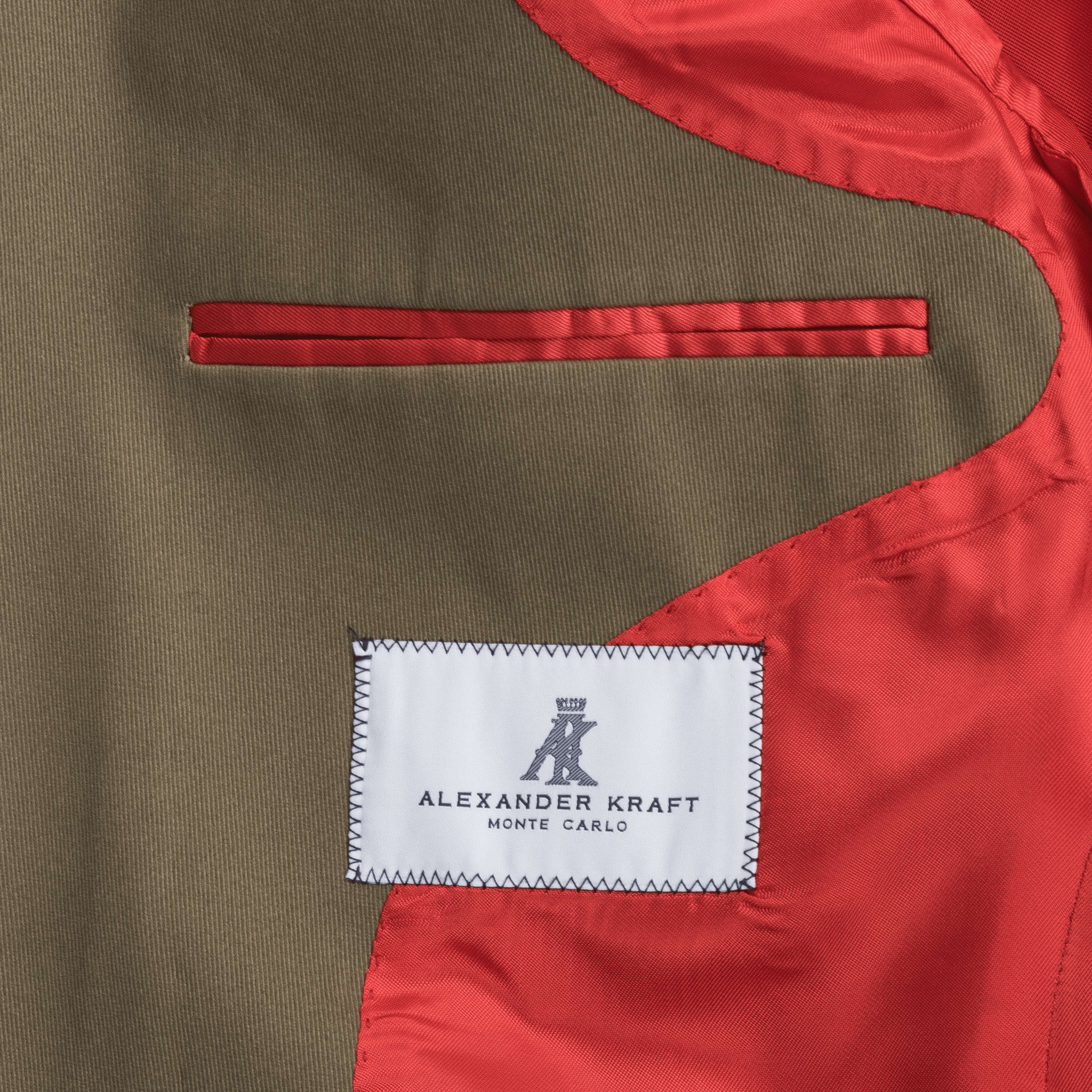 Cotton suiting is a summer essential as it is robust, comfortable and breathable. This fine cloth woven by Drapers in Italy has a very small amount (3%) of elastane to aid recovery and add a litte resilience. The rich khaki shade and twill weave adds a certain formality making this the perfect warm-weather business suit but it also has a playful side. Cut on our Signature house model it boasts a medium width notch lapel, slanting flapped pockets with a ticket pocket and side vents. The silhouette has been informed by the bespoke tradition and has a close fitting, lightly shaped chest and a nipped-in waist. Other bespoke touches include the real horn buttons, working cuff and the silk thread attached on the underside of the lapel to accommodate your boutonniere. It is only partially lined for comfort and can be paired with the matching Riviera trousers to create and elegant suit but can also be worn as a blazer with trousers of cream, ecru or navy.