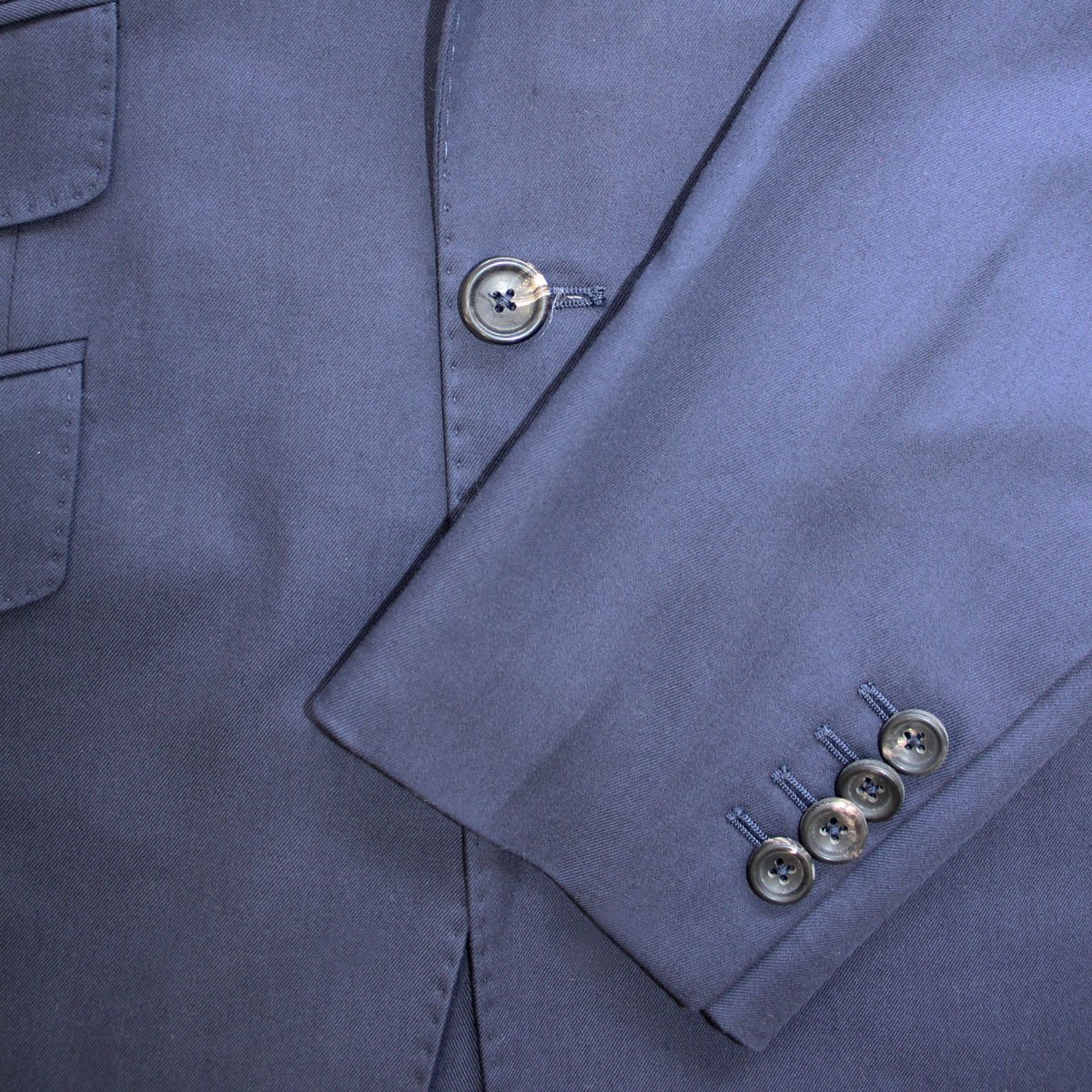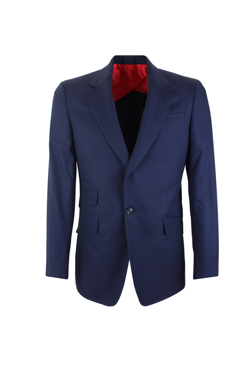 Cotton suiting is a summer essential as it is lightweight and breathable. The dark blue shade and twill weave adds a certain formality making this the perfect warm-weather business suit but it also has a playful side. Cut on our Signature house model it boasts a medium width notch lapel, slanting flapped pockets with a ticket pocket and side vents. The silhouette has been informed by the bespoke tradition and has a close fitting, lightly shaped chest and a nipped-in waist. Other bespoke touches include the real horn buttons, working cuff and the silk thread attached on the underside of the lapel to accommodate your boutonniere. It is only partially lined for comfort and can be paired with the matching trousers and double-breasted waistcoat to create a formal outfit but can also be worn as a blazer.