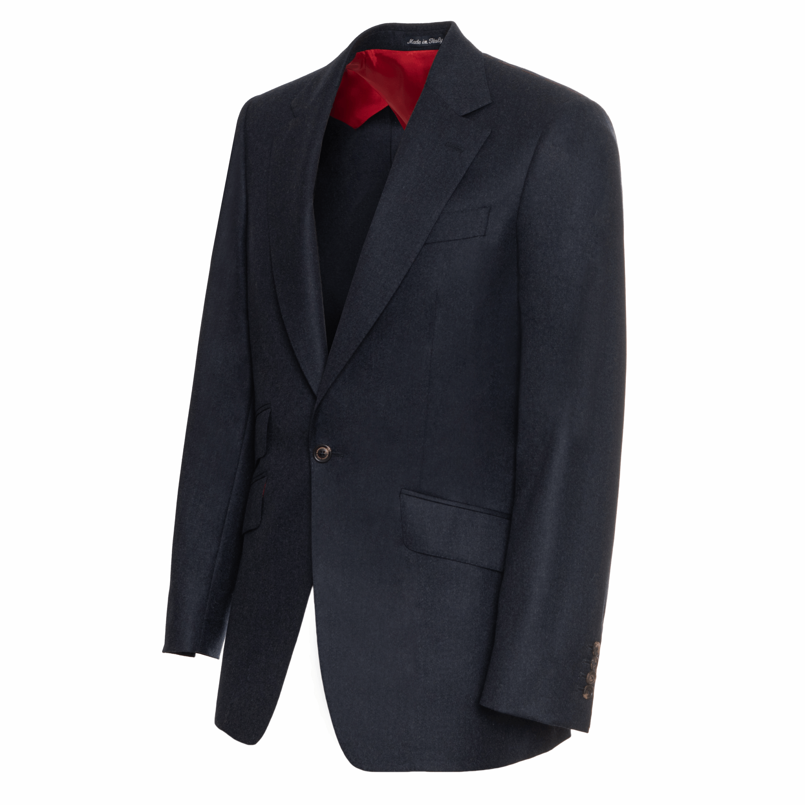 The bespoke-inspired Signature cut of AK MC is single-breasted one-button closure and distinguished by its refined medium-width notch lapel, roped shoulders, and patch pockets without flaps and gussets.