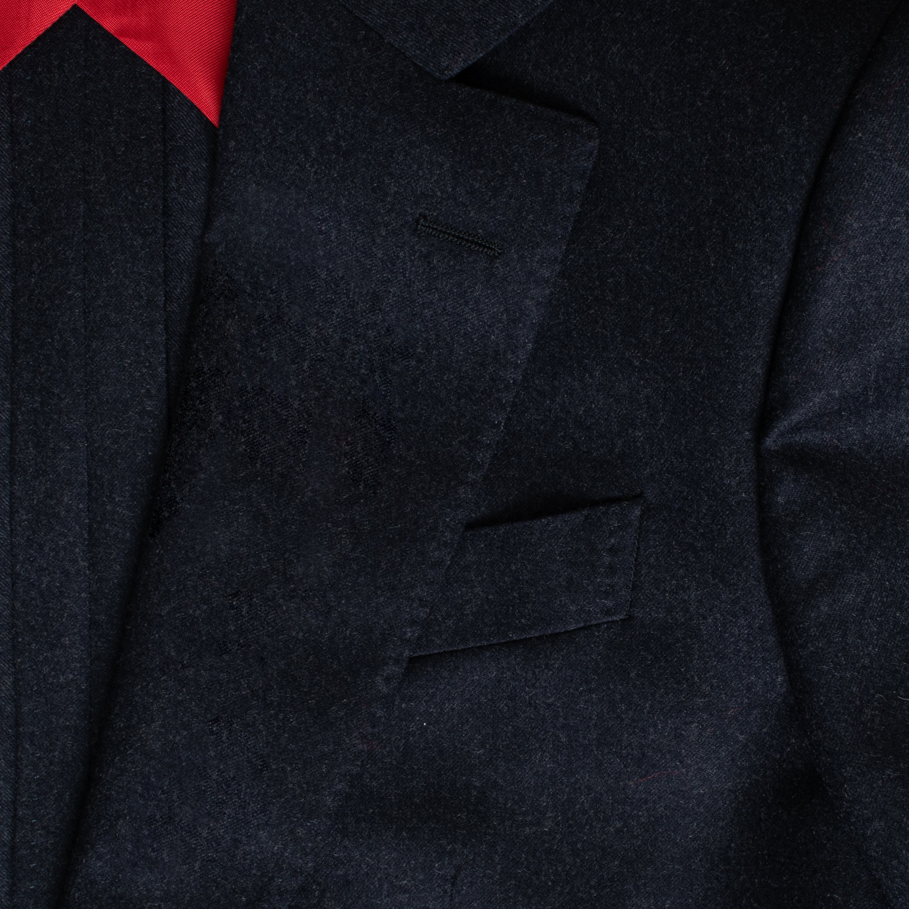 As is customary with AK MC, it includes real dark horn buttons, working cuffs, and silk thread attached to the underside of the lapel, which features a delicate buttonhole – a detail that secures a charming boutonnière when the right occasion arises.