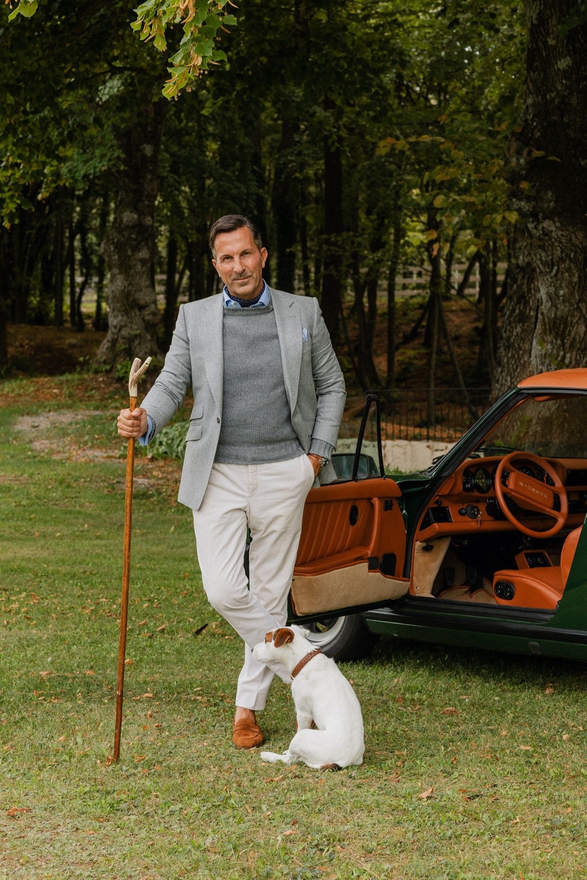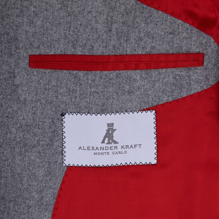 Alexander Kraft is routinely asked a recurring question by aspiring gentlemen: “Which are the most essential items if I want to build a timeless wardrobe ?” Kraft’s answer is invariably the same: A blue suit, a grey suit, a blazer and a tweed jacket. Luckily for all aspiring men of style, Alexander Kraft Monte Carlo offers all 4 items (in many variations), thus allowing everyone to lay the foundation for a timelessly elegant, high-end wardrobe that will stand the test of time in both terms of style and quality. This jacket in light grey flannel may just be THE most enduring example of its kind: Made from the finest medium-weight flannel from the world’s oldest family-owned mill, Vitale Barberis Canonic (est. 1663) from Northern Italy, this jacket features Alexander Kraft’s iconic signature cut, with a single-breasted one-button closure, a nipped waist, roped shoulders, high armholes, and a bespoke-inspired slim silhouette that is both flattering and comfortable. Naturally, the usual sartorial refinements such as working buttonholes, a flower loop behind the lapel, a light half-canvas construction and half-lining in contrasting red silk are all present. The jacket can be worn on its own with AK MC’s ecru winter cotton trousers, the navy twill trousers or even jeans, or be combined with the matching trousers to form a highly elegant and versatile suit. The optional double breasted waistcoat with shawl lapels will add the final dashing note for those who aspire to truly outstanding elegance.