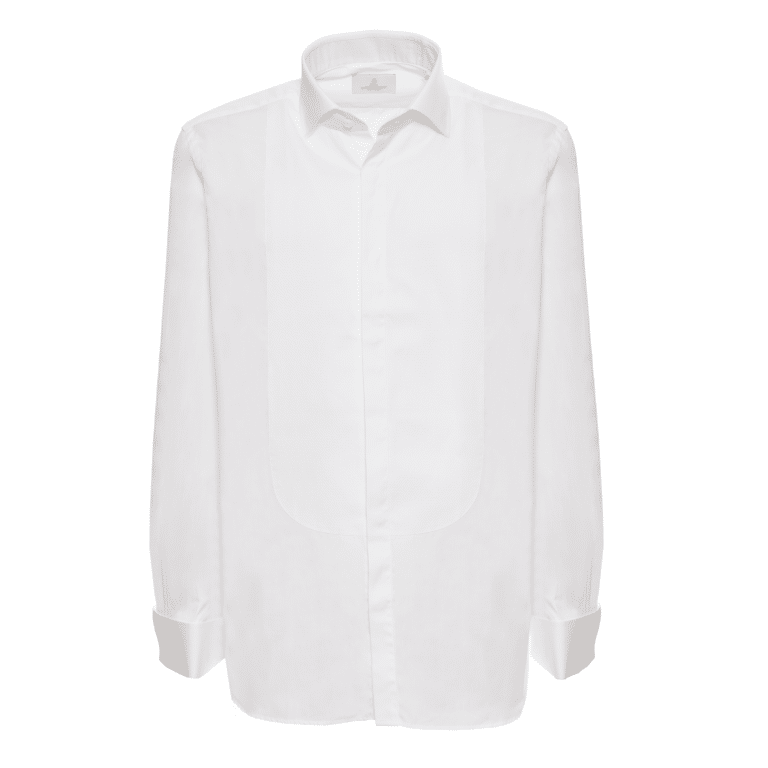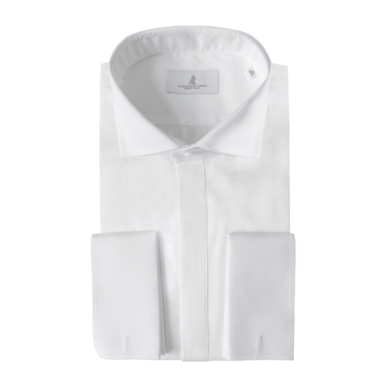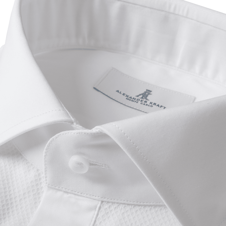 The perfect modern evening shirt from Alexander Kraft Monte Carlo. The crisp white 2-fold Egyptian cotton poplin has a traditional contrasting bib in cotton pique marcella with rounded edges.