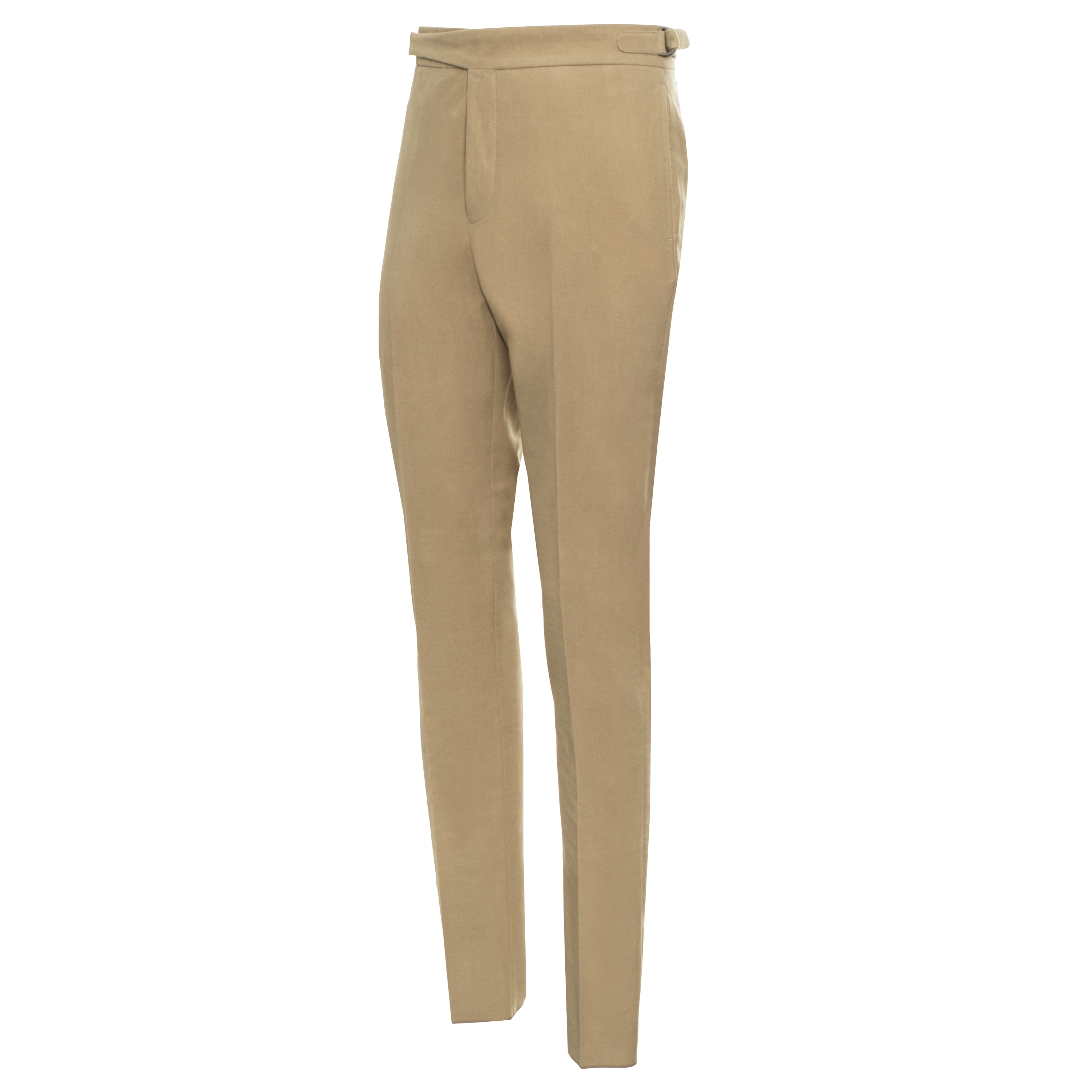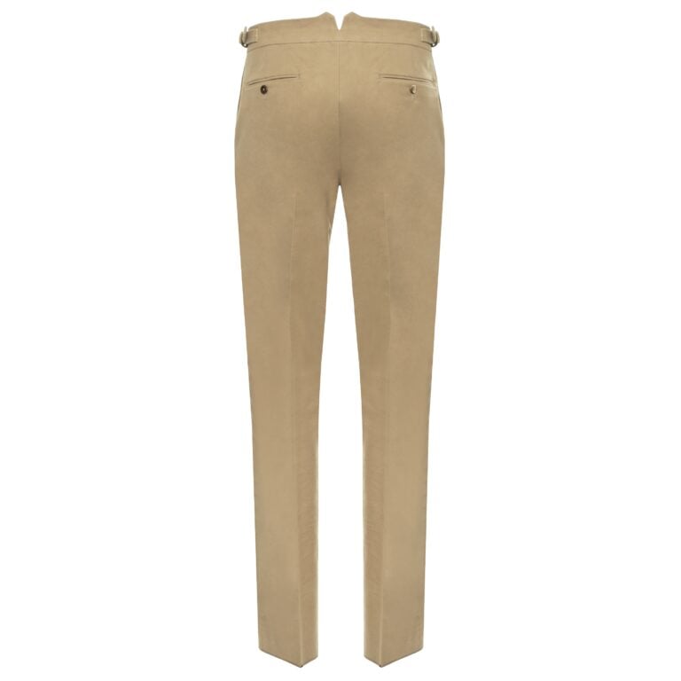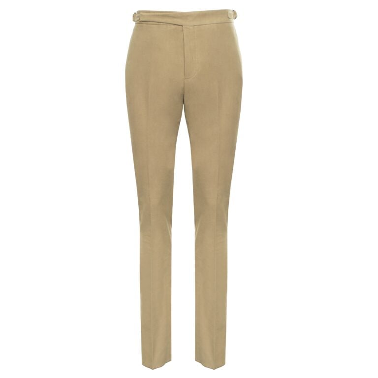 Crafted from premium Italian-woven moleskin, these trousers combine durability with exceptional comfort, making them ideal for the cooler seasons from autumn through early spring. The fabric’s soft yet substantial texture sets it apart from traditional, stiffer varieties, enabling these trousers to transition effortlessly between country and city settings. The elegant khaki shade, a term derived from the Hindi and Urdu word khākī meaning “dust-coloured”. This versatile tone pairs well with navy, beige, and camel, offering endless styling possibilities. Styled with blazers, sports jackets, or cashmere knits, these trousers embody a timeless, informal elegance.