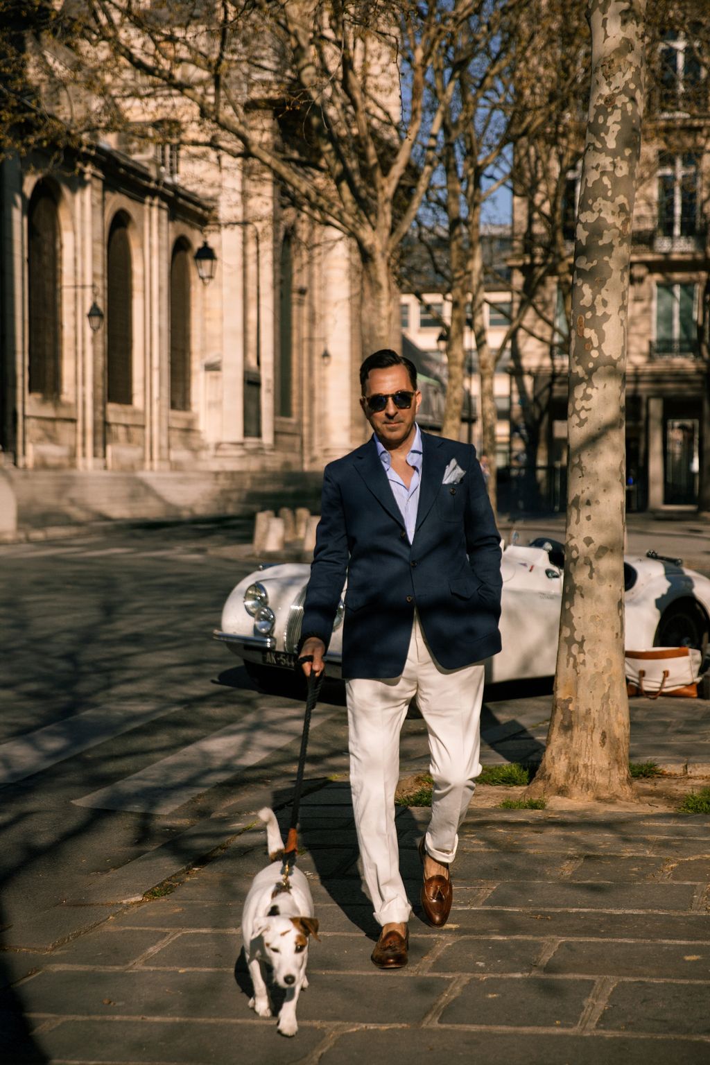 A discreet martingale is attached to the back, while its tailored double vents embody skilled craftsmanship. And as is custom with AK MC, it is partially lined in matching silk. It’s only gracefully transmitted when pairing it with an abundance of AK MC designs, with the Perfect jeans, Gurkha trousers, Bengal stripe shirt, suede Belgian loafers, Venetian slippers, and, last but not least, a navy Angora blend luxury knitted tie.